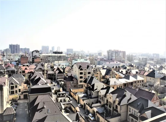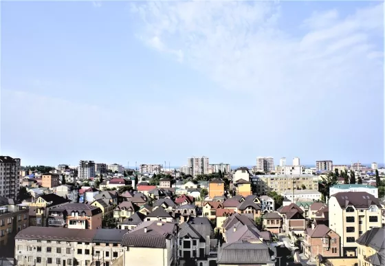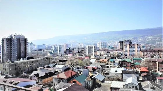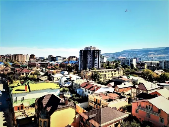 Красивый вид с квартир на город и на горы.